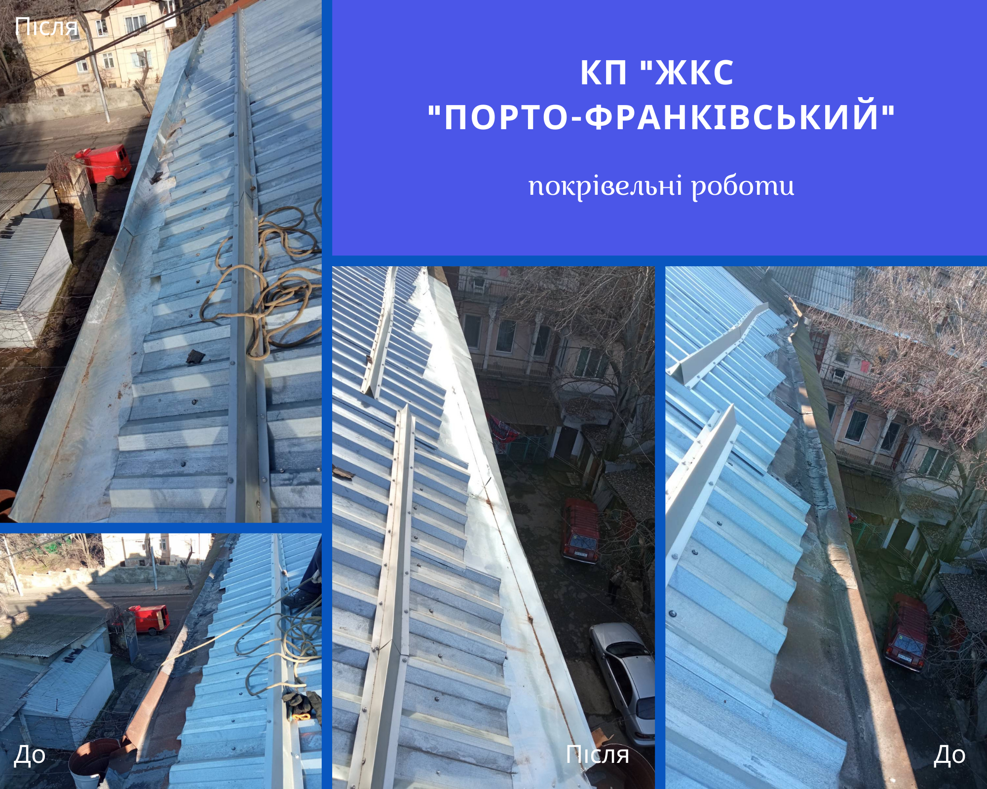 На фото: фахівці ЖКС “Порто-Франківський” виконали поточний ремонт покрівлі за адресою Ольгіївький узвіз, 3