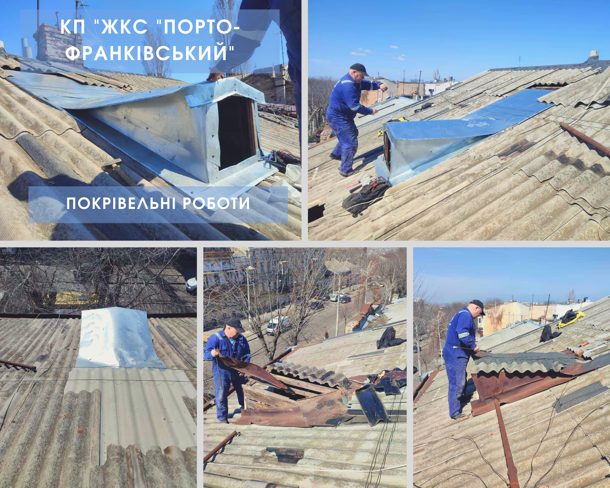 На вул. Ніжинській, 27 фахівці ЖКС “Порто-Франківський” виконали покрівельні роботи”