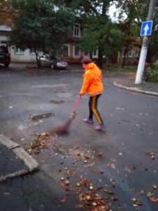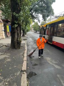 Прибирання прибудинкових територій КП “ЖКС “Порто-Франківський”.