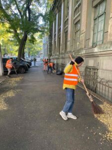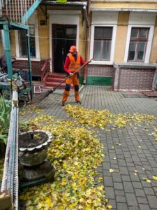 Санітарне прибирання прибудинкових територій які знаходяться на обслуговуванні комунального підприємства.