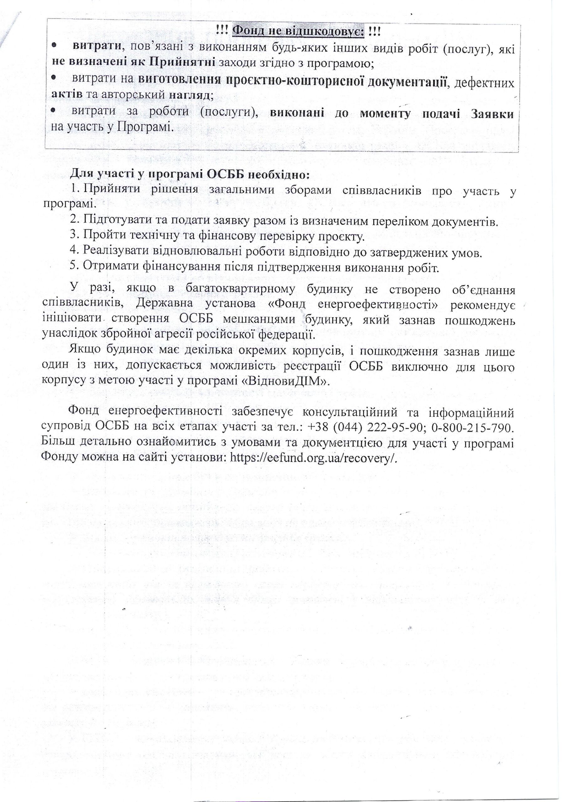 Додатково до відома керівників ОСББ, які мають можливість приймати участь в державній програмі “ВідновиДІМ”, для будинків які зазнали пошкоджень в наслідок бойових дій